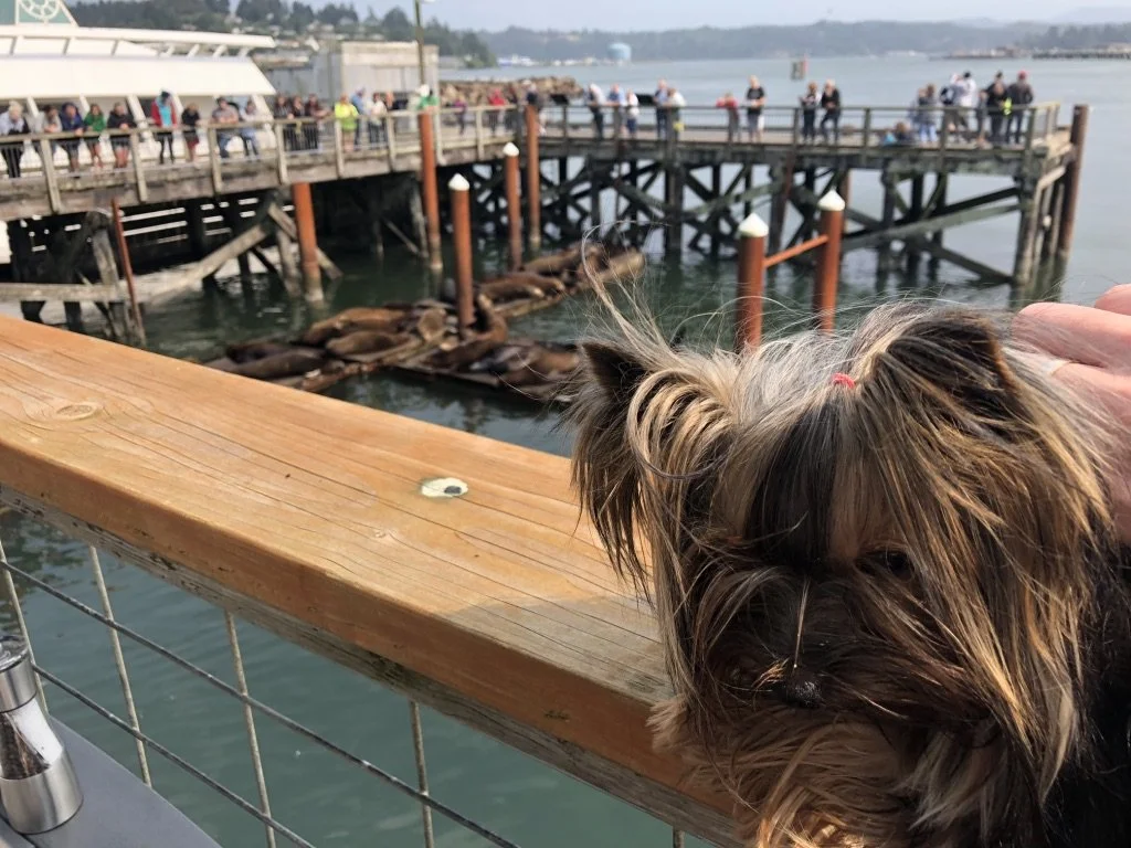 Featured in one of the scenes, Ernesto is a Yorkshire Terrier that came into our lives in 2017. In the picture on the right he’s looking at the seals from a pier along the Oregon Coast, it was probably Newport.